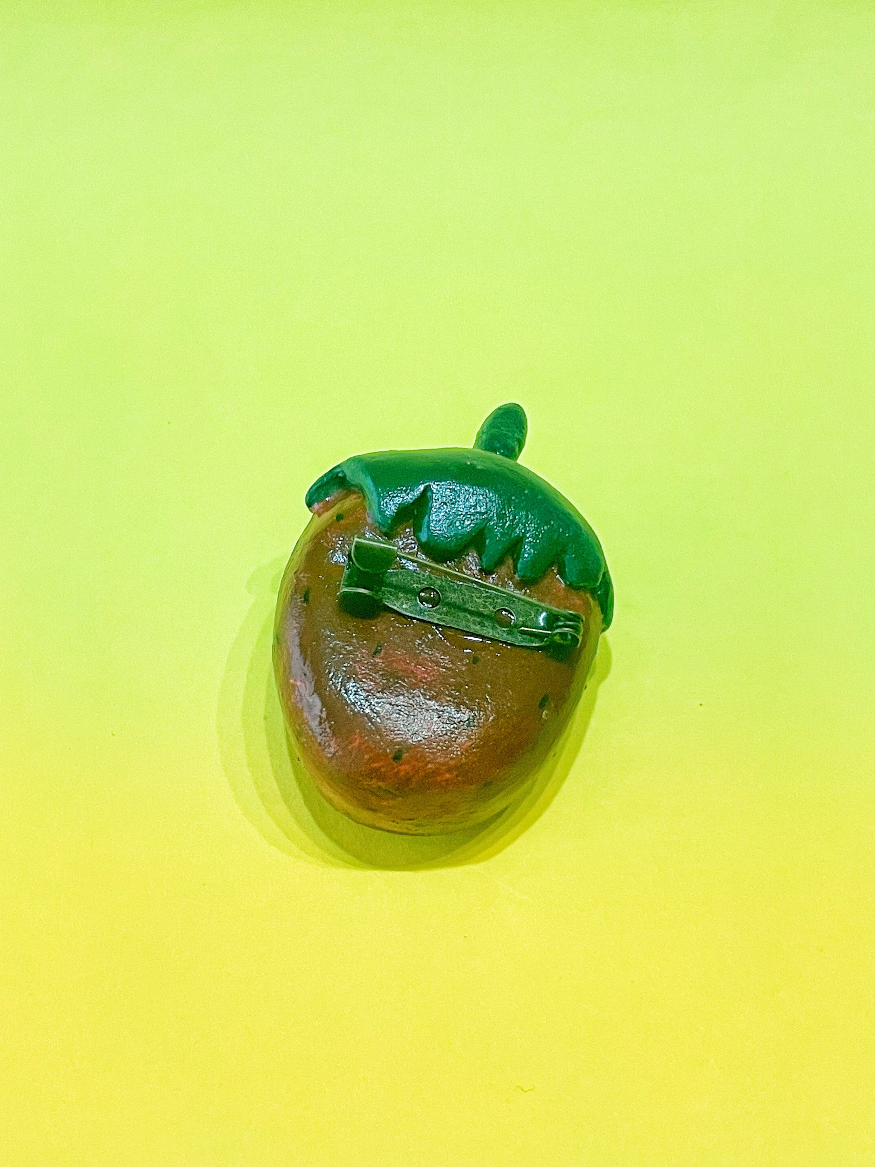 「苺ちゃんブローチ」は、オーブン粘土で手作りした個性的な苺のブローチです。