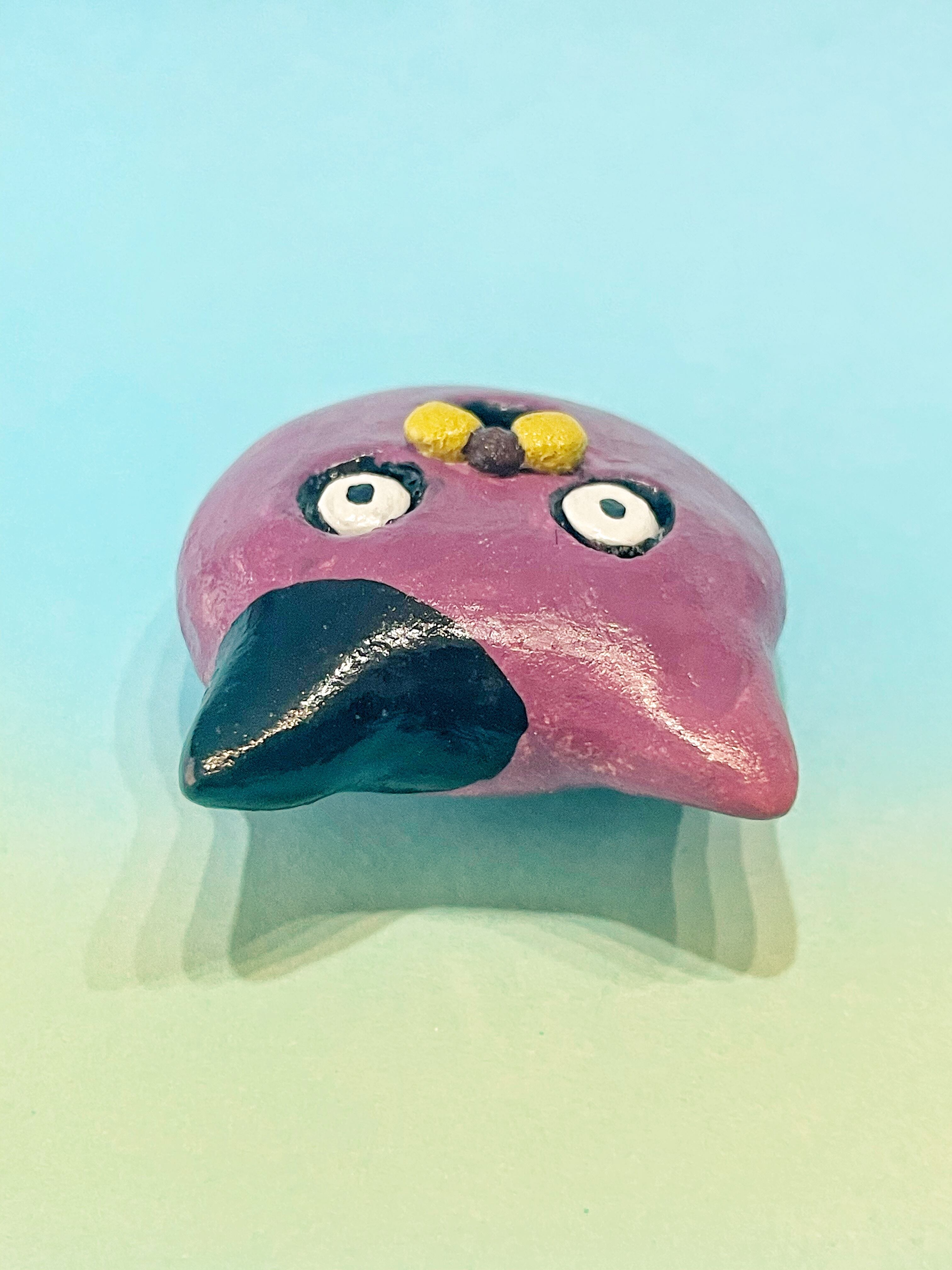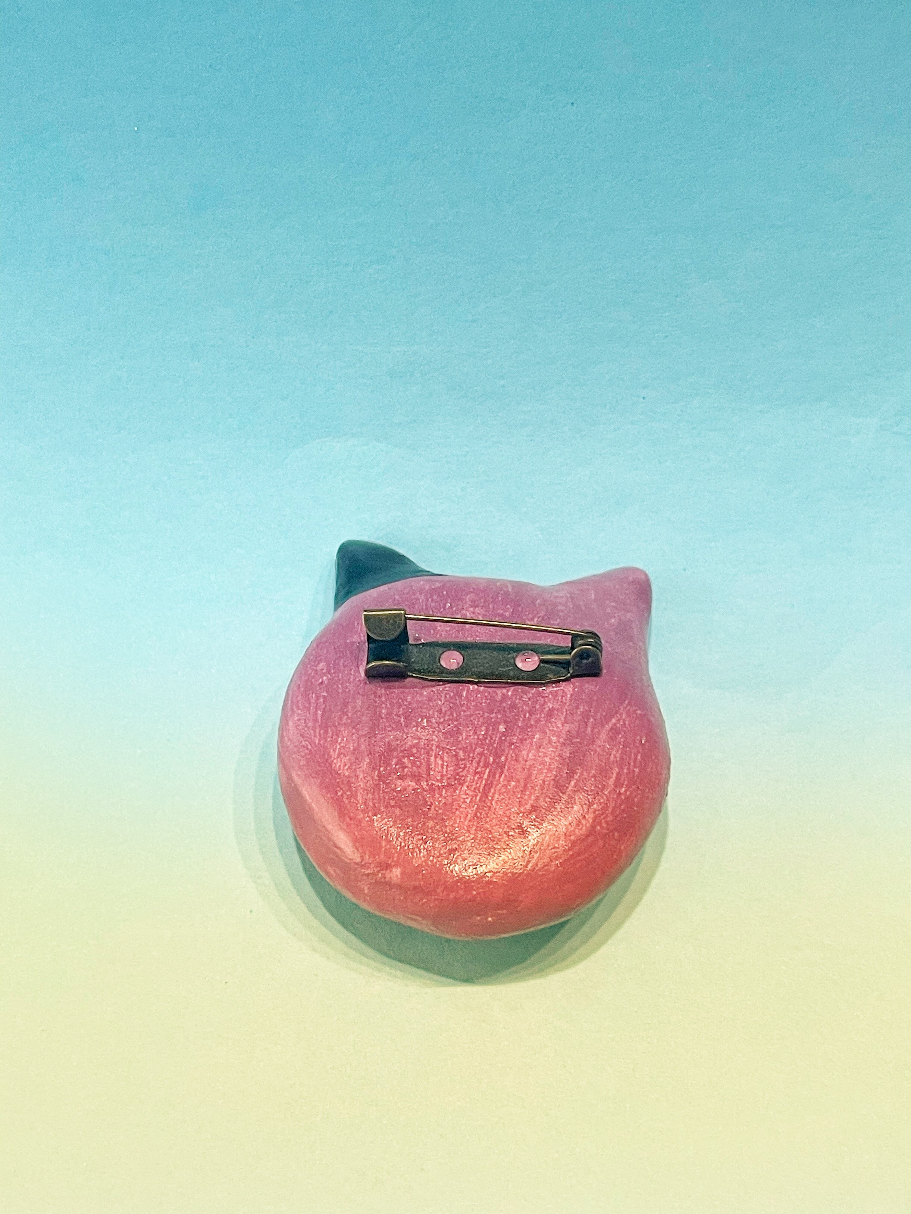 「ニャンコの顔ブローチ」は、オーブン粘土で手作りした愛らしいニャンコの顔のブローチです。