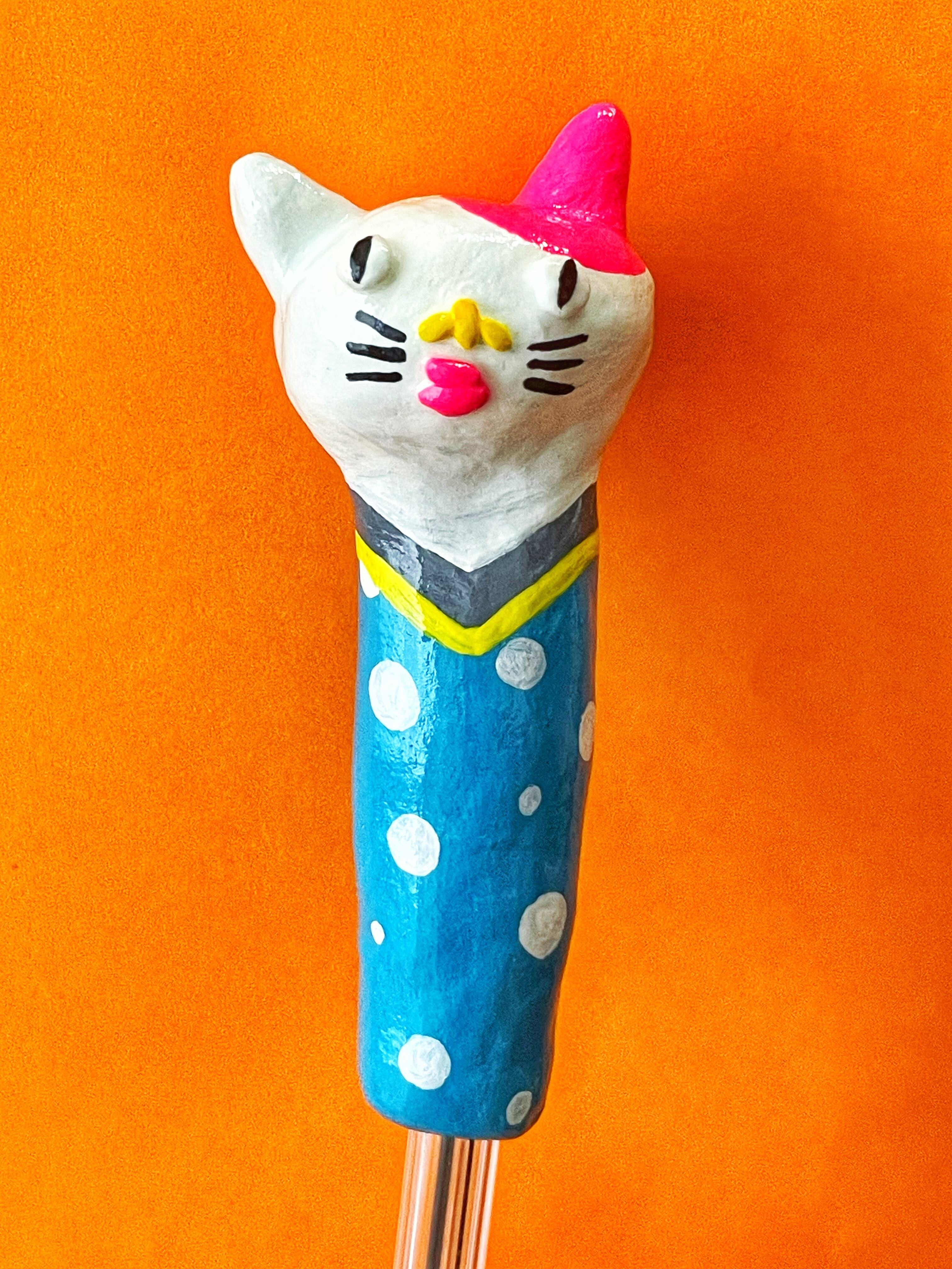 「外せる!カラフル猫ちゃんボールペン」は、石粉粘土を使用して手作りした、愛らしい表情を持つカラフルな猫ちゃんのボールペンです!