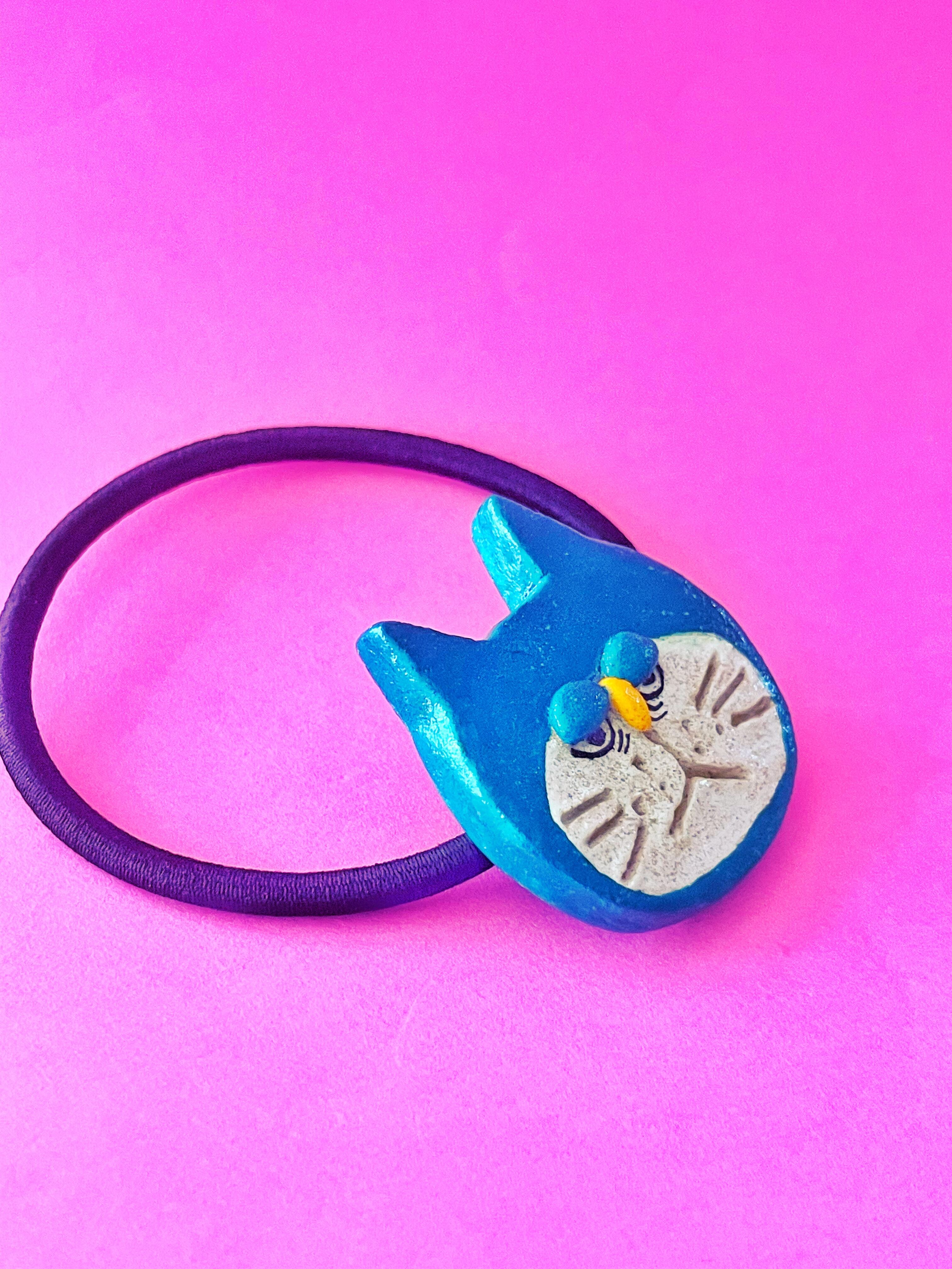 「深緑にゃんこヘアゴム オーブン粘土」は、オーブン粘土を使用して手作りした、愛らしいニャンコの顔のヘアゴムです!