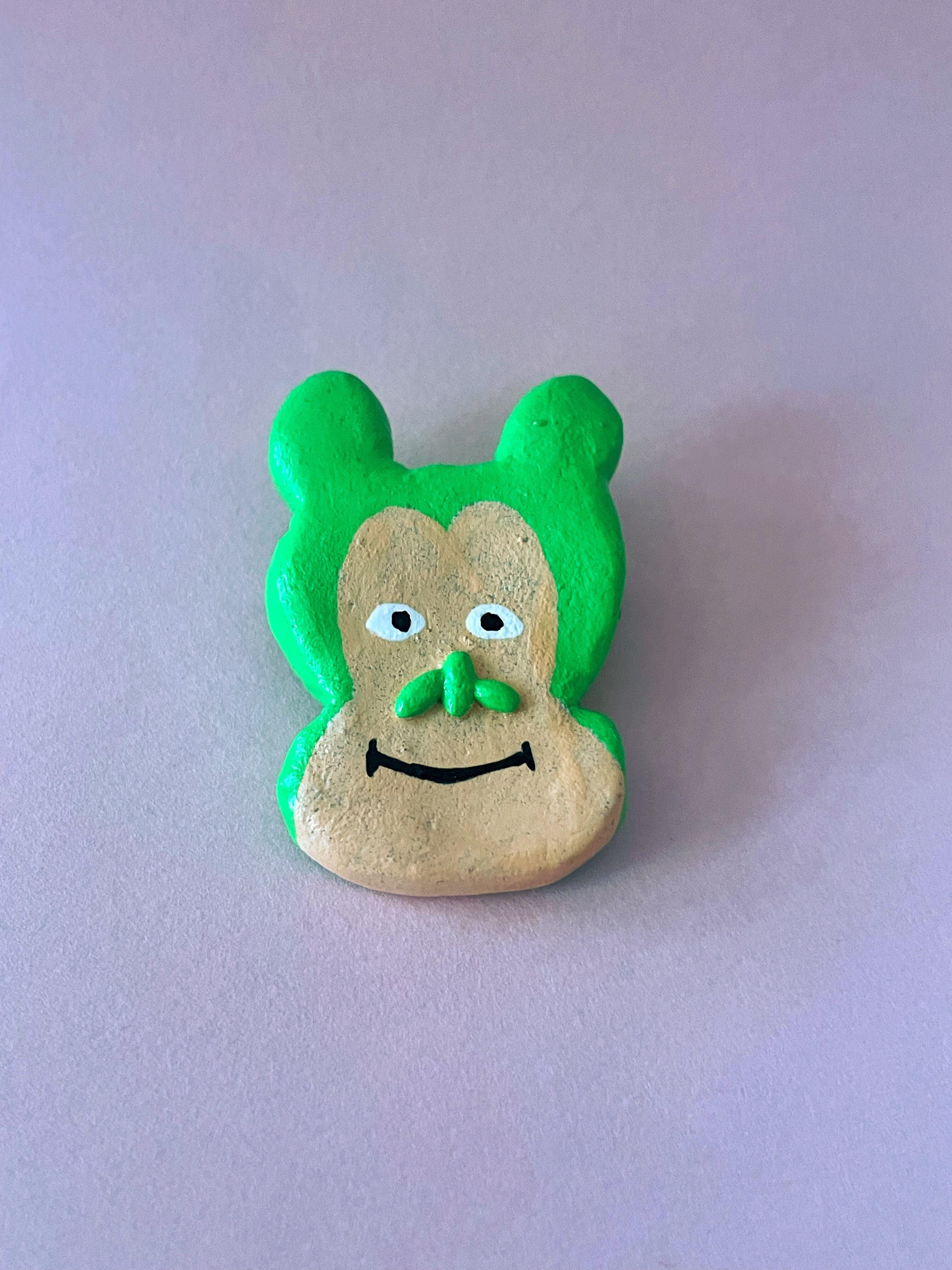 「黄緑ねずみのブローチ オーブン粘土」は、オーブン粘土を使用して手作りした、愛らしい黄緑色のねずみデザインのブローチです!