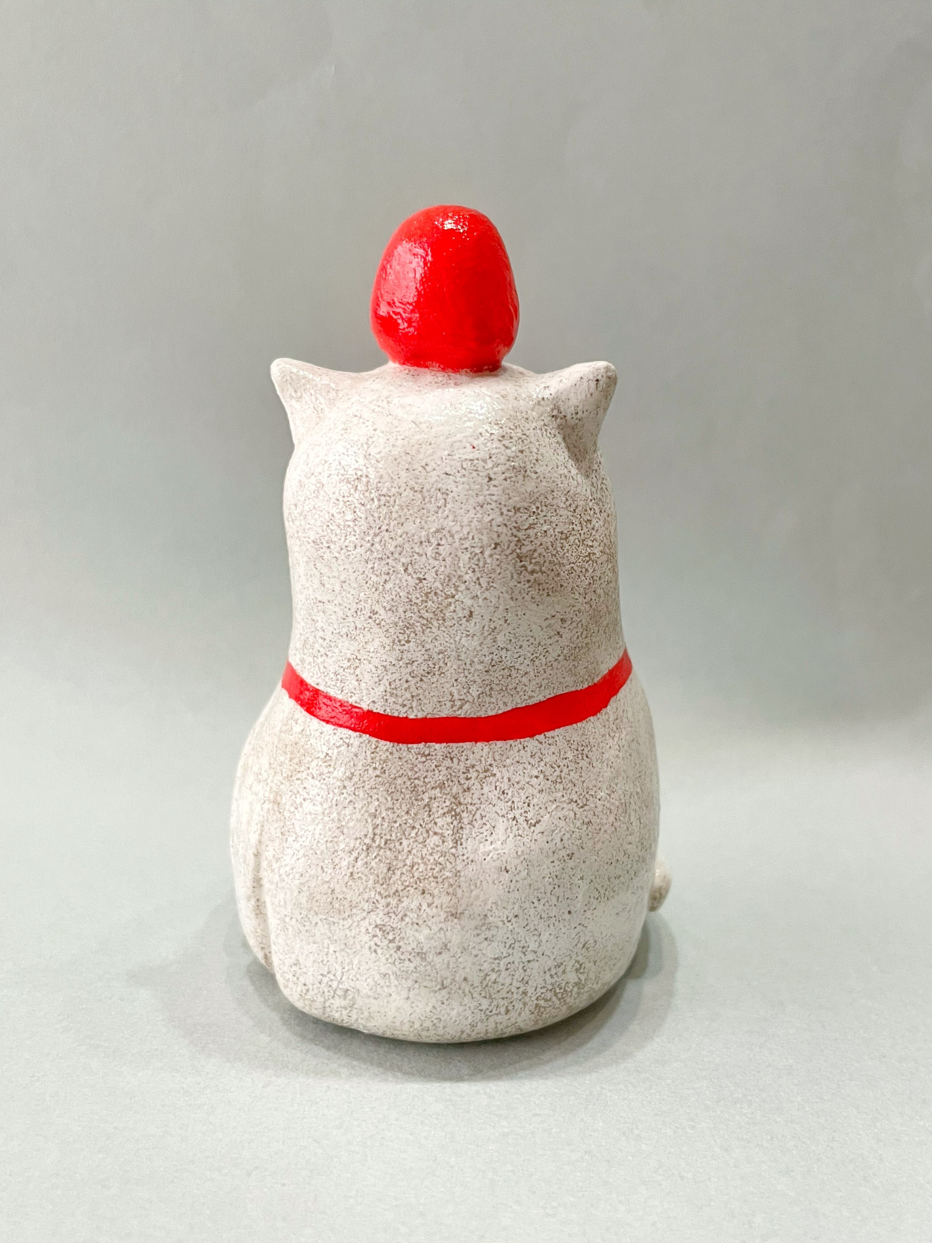 「ダルマを乗せた白猫ちゃん オーブン粘土」は、オーブン粘土を使用して手作りした、非常に可愛らしい置き物です!