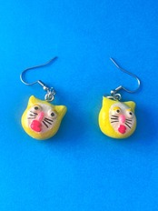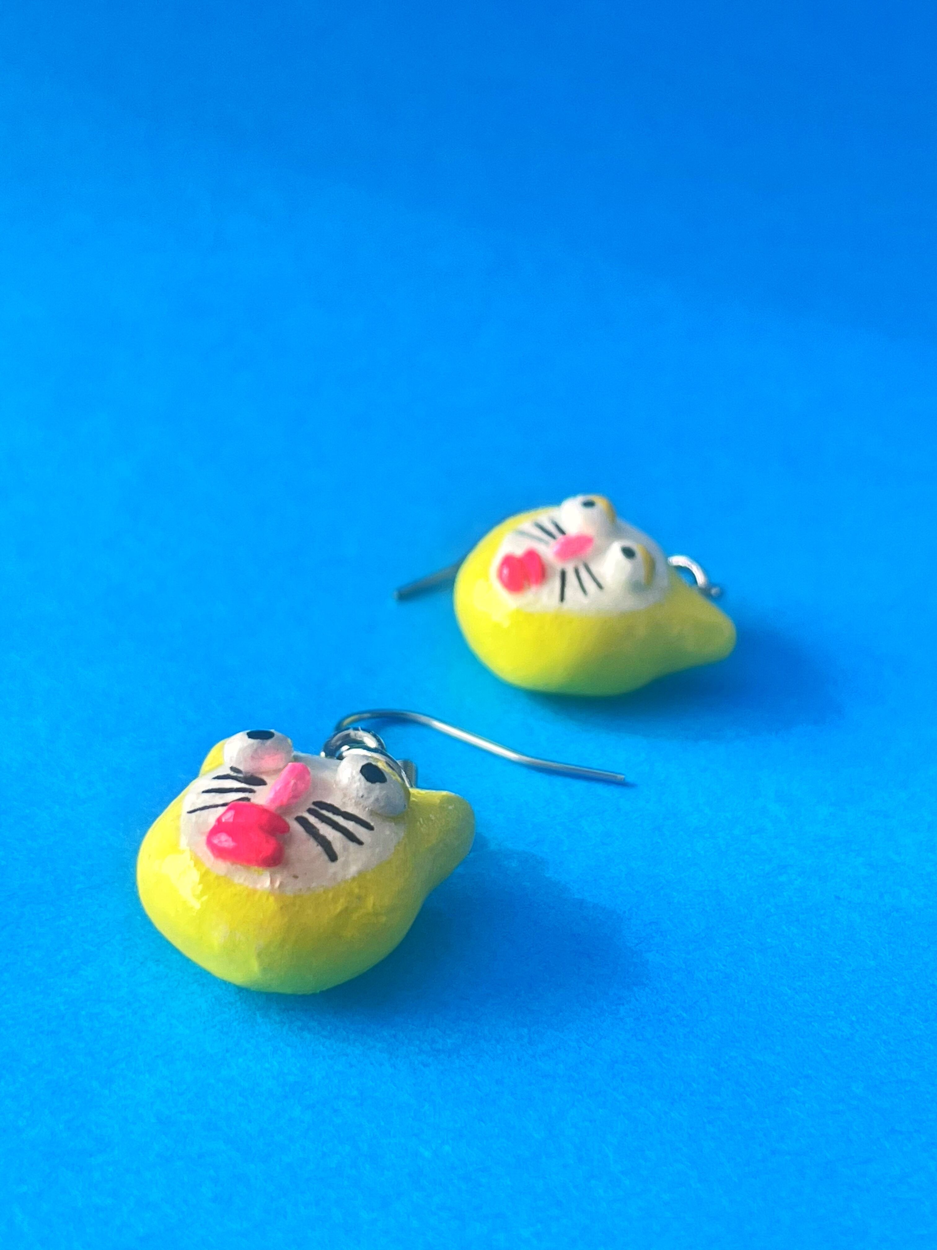 「イエローにゃんこピアス 石粉粘土」は、石粉粘土を使用して手作りした、愛らしいニャンコのお顔のピアスです!