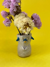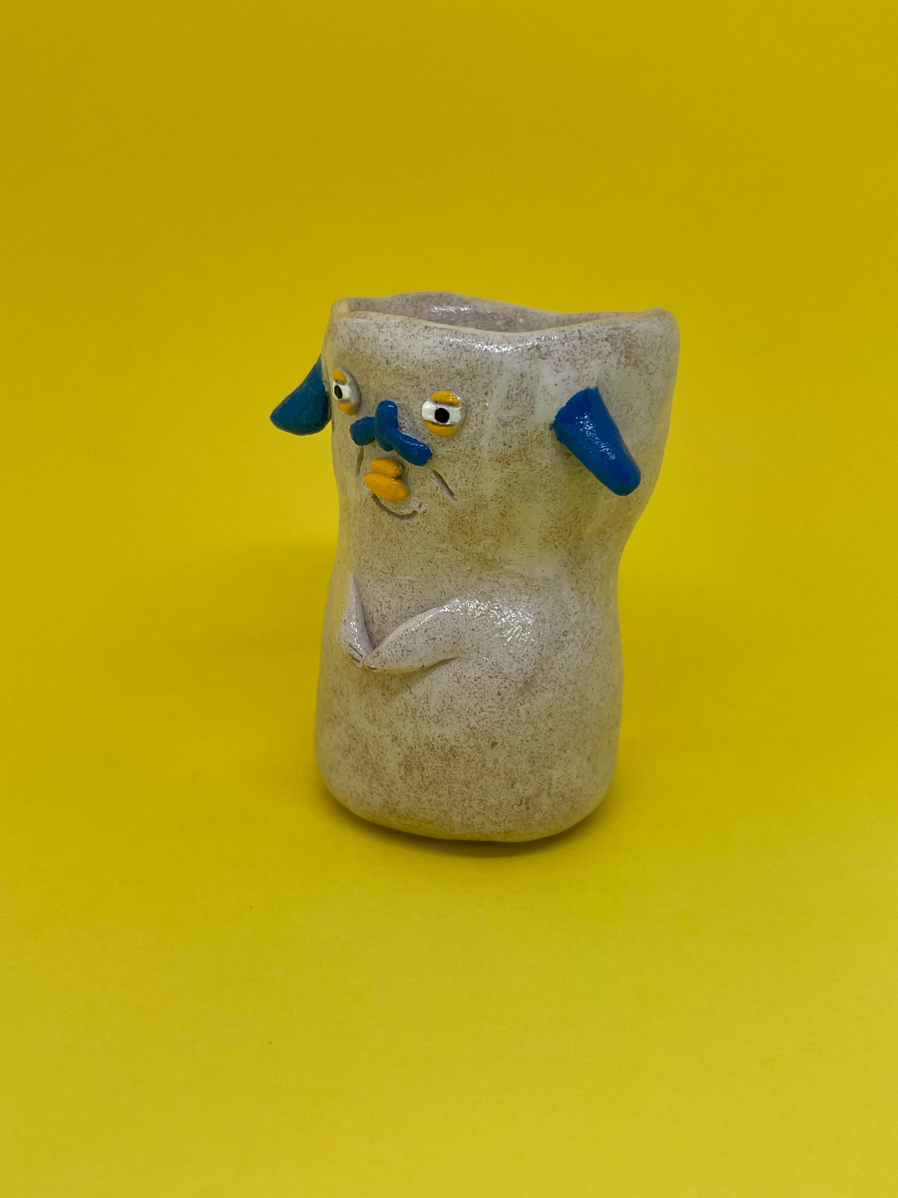 可愛らしいわんこがモチーフのオーブン粘土製の小さな一輪挿しです。手作り感溢れる温かみのあるデザインで、お部屋に可愛らしいポイントを加えてくれます。
