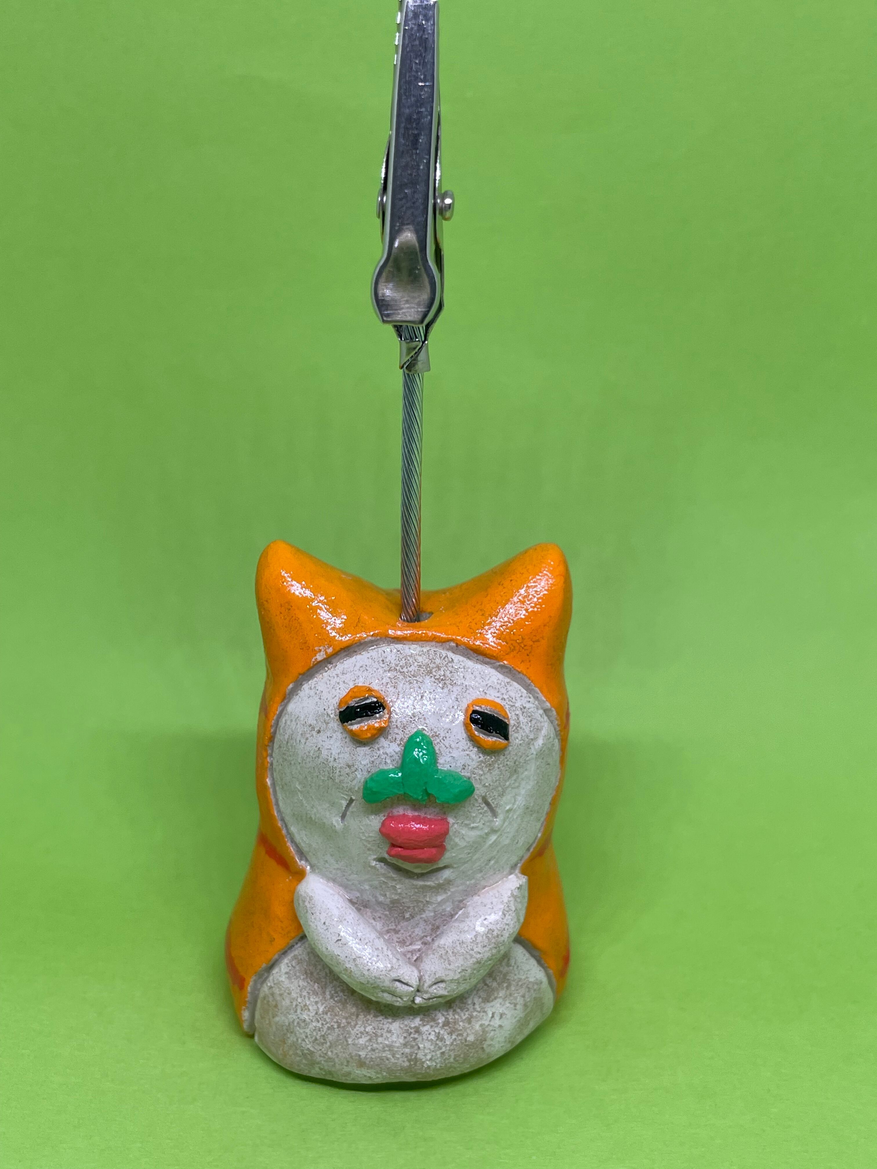 トラ猫様のオーブン粘土で出来たメモクリップは、可愛らしい猫の形状をしたハンドメイドのメモクリップです。