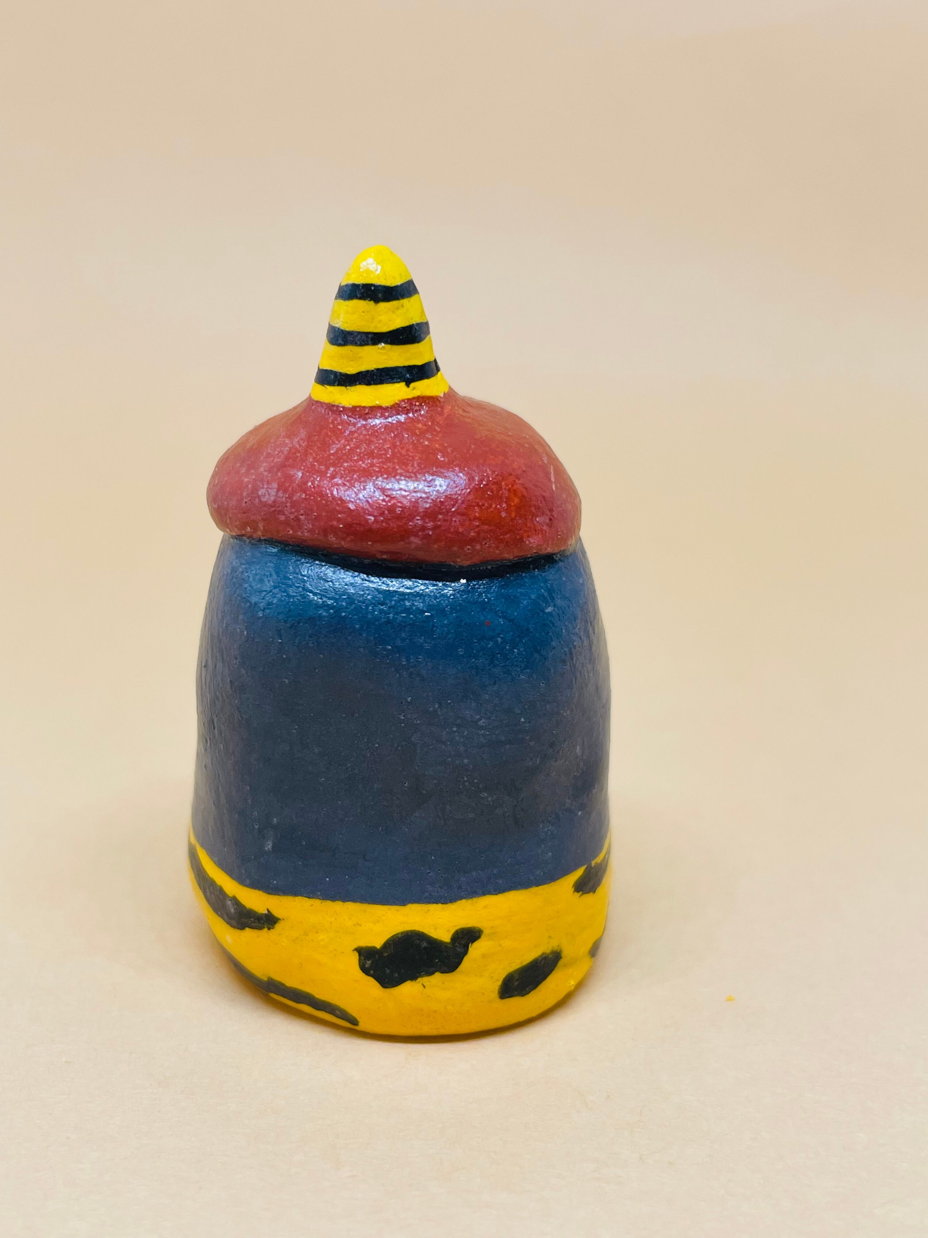 手作りの温かみが感じられるオーブン粘土で作られたこの置き物は、どこか懐かしさを感じさせる存在感があります。小さな黒鬼ちゃんがあなたを見つめる姿に癒やされること間違いなしです。