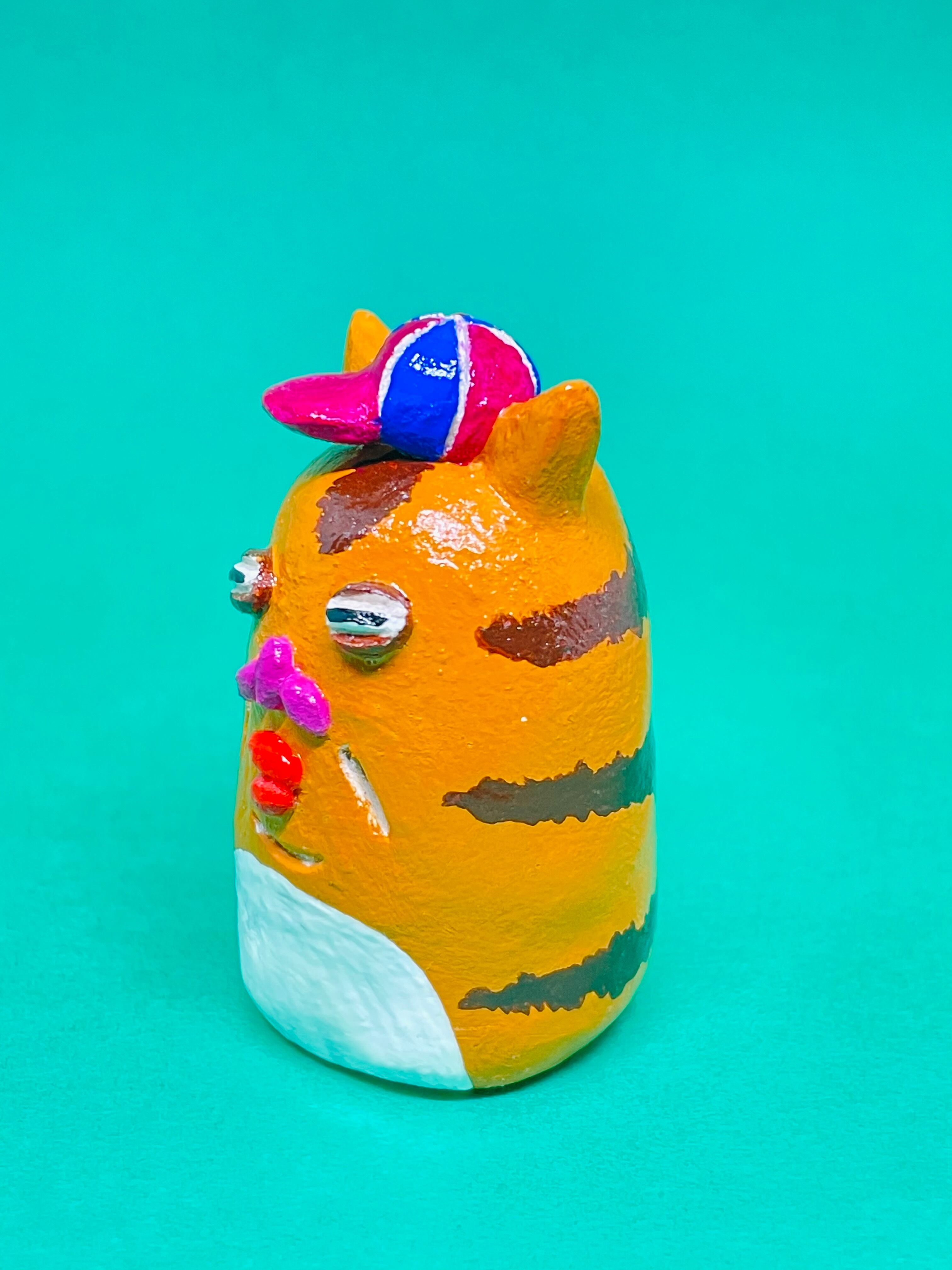 ユニークで可愛らしいキャップを被ったニャンコの置き物が登場しました!