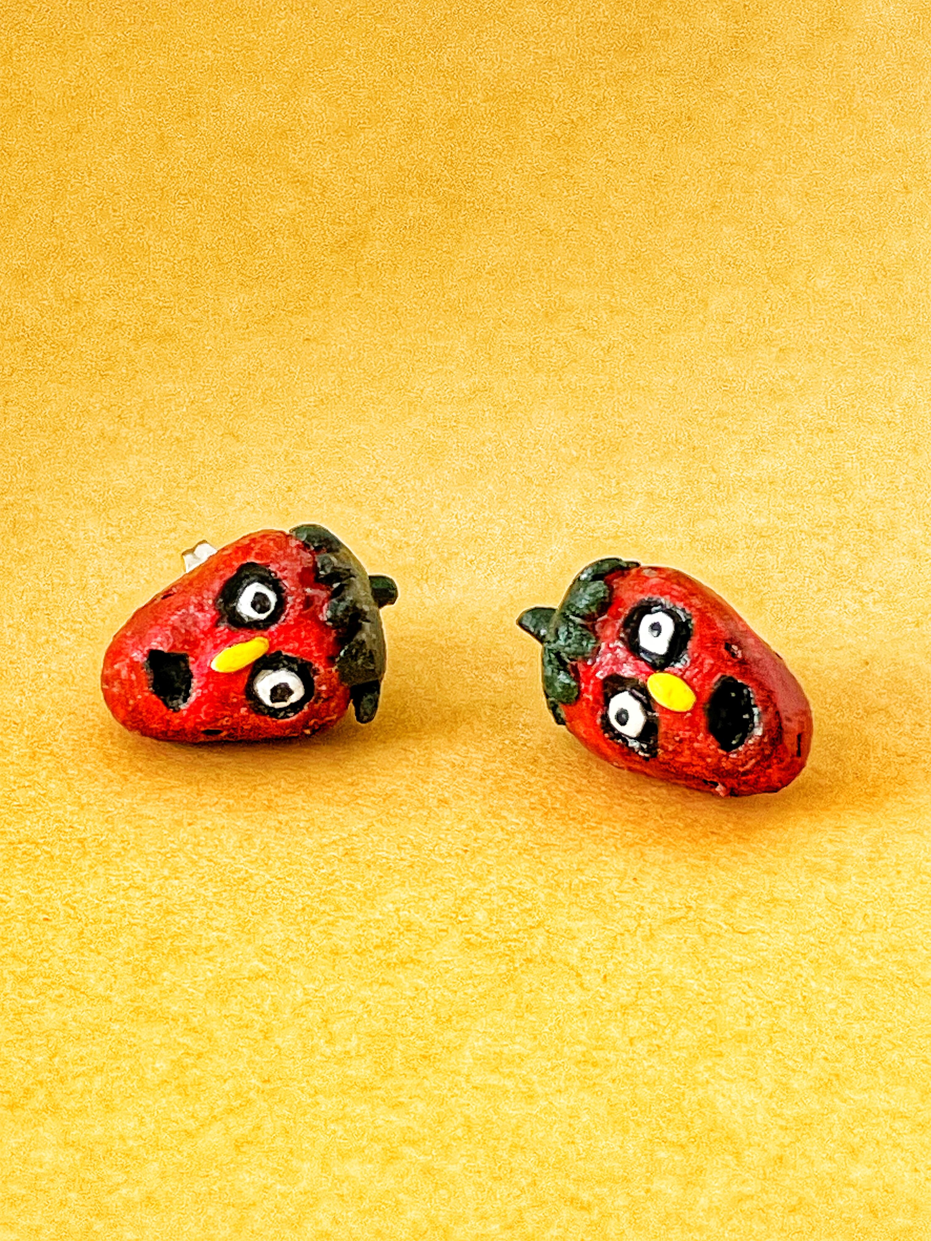 「苺のお化けピアス オーブン粘土」は、オーブン粘土で手作りしたユニークなピアスです。